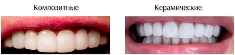 Композитные — дешевле, изготавливаются за один визит, ремонтопригодны в случае сколов. Но менее эстетичны, требуют периодической полировки и корректировки для сохранения блеска и тона.